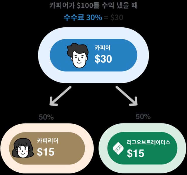- 카피 리더: 수수료의 50% 를 받습니다.